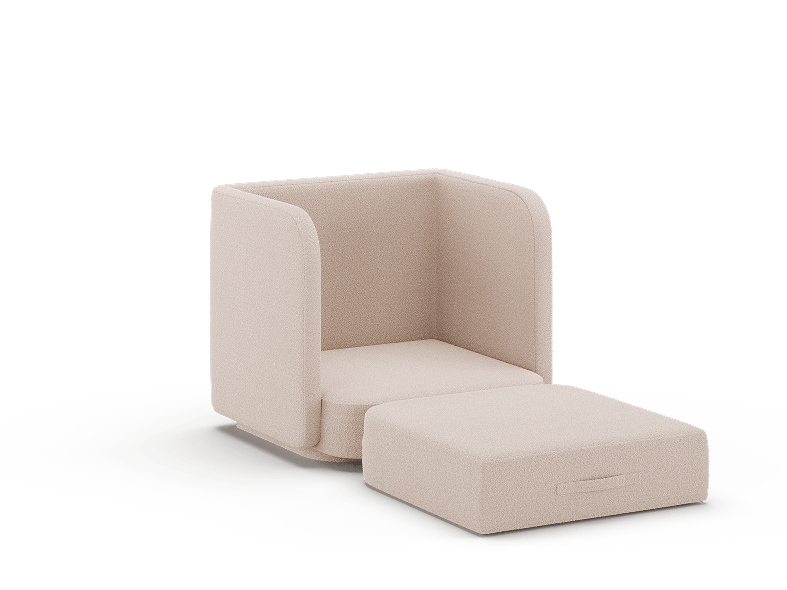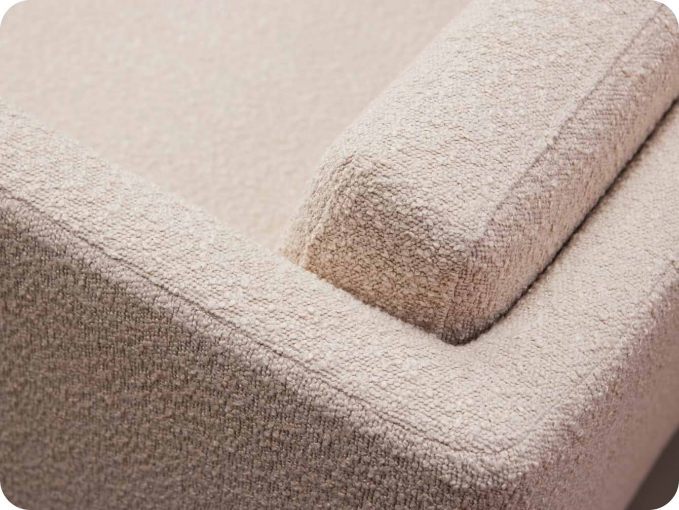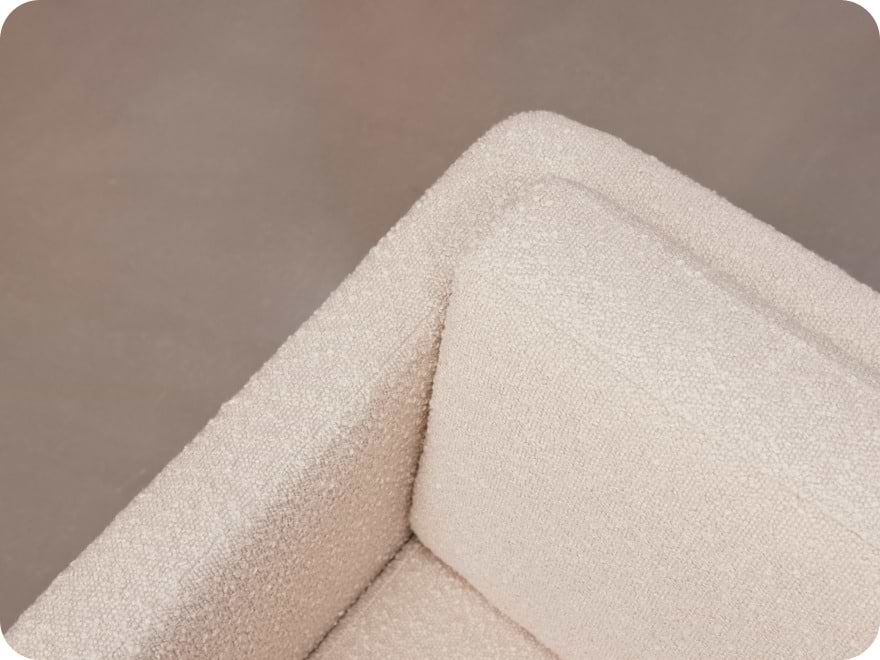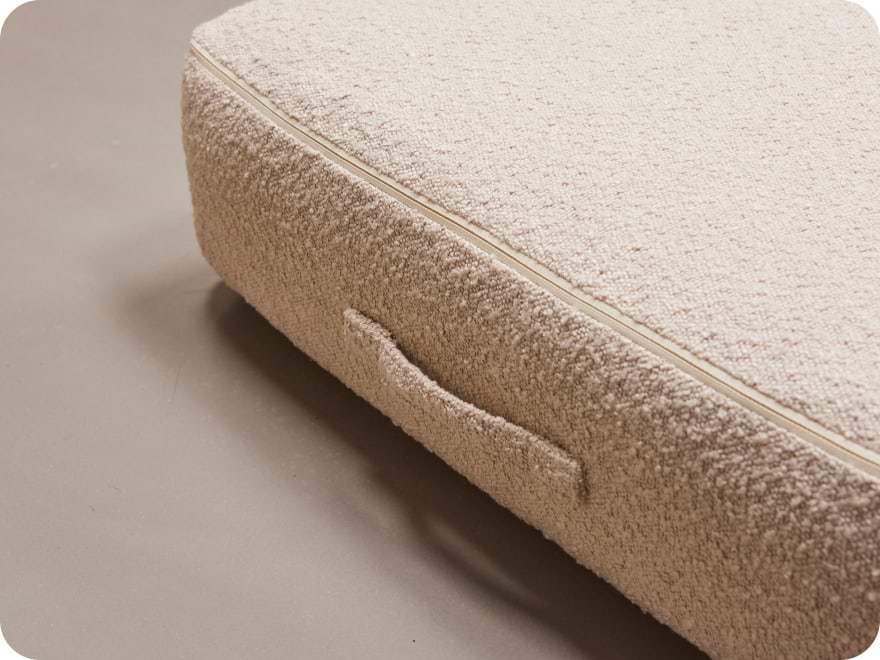 Setet, og dermed liggeflaten, er laget av solid, pustende skum, som er svært behagelig for barnet ditt å ligge på. Stolens myke bouclé-stoff setter en siste, myk prikken over i-en på stolens komfort.
