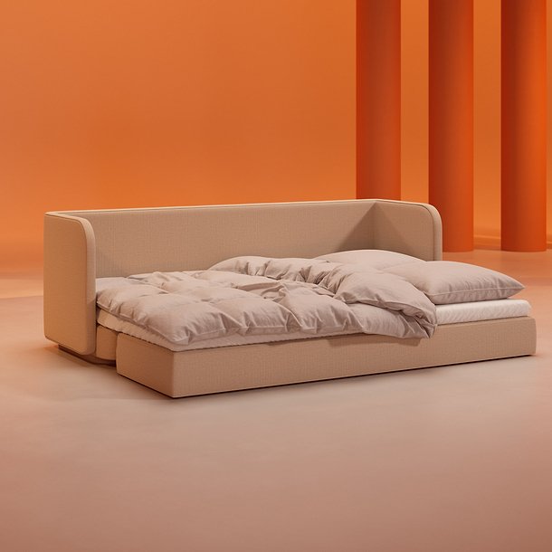 Det er enklere enn enkelt å forvandle Classi fra sofa til seng. Med ett enkelt dytt opp løftes den øverste madrassen i sofasetet ut og legges på gulvet—og vips har du en soveplass på 140x200 cm.