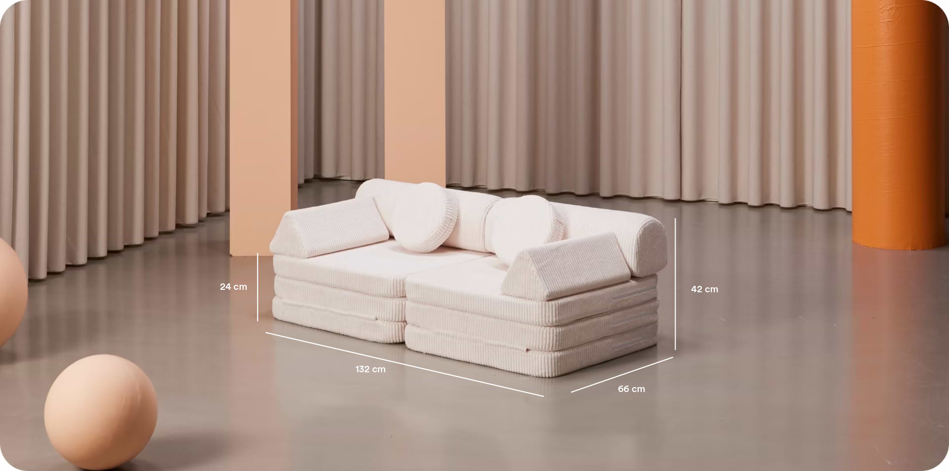 Barn sover godt når de har lekt godt. Når kroppen har vært i gang og fantasien har fått løpe fritt. Av den grunn har vi skapt lekesofaen Imagine. For Imagine er akkurat det barnet ditt bestemmer at den skal være: Én dag en hemmelig hule. En annen dag et flyvende teppe. Ikke minst er den en ekstra soveplass når leken er over og natten tar til.