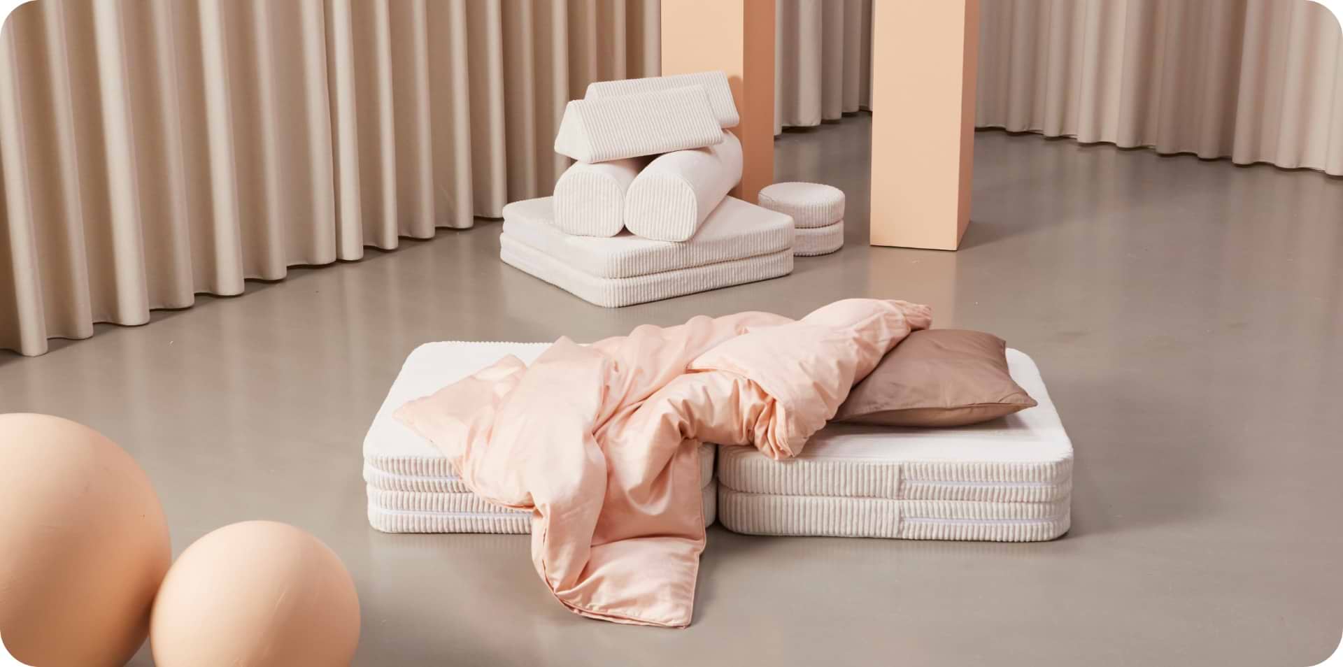 På samme måte kan Imagine forvandles til en ekstra, liten soveplass når lekekameraten skal overnatte, eller når dere trenger en madrass på soverommet fordi junior kommer snikende hver natt.