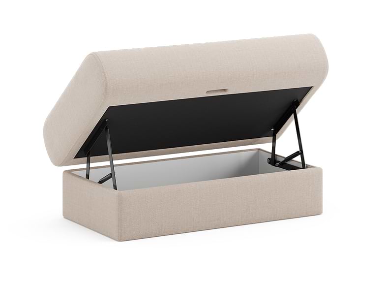 Puffen matcher elegant MOMA & MOME-sovesofaene, som er skapt i samme designånd som puffen, der sirkulært og firkantet møter hverandre i en vakker forening. Puffen gir sovesofaene en sjeselong-aktig stemning, slik at den doble funksjonaliteten mellom seng og sofa kommer enda tydeligere frem.