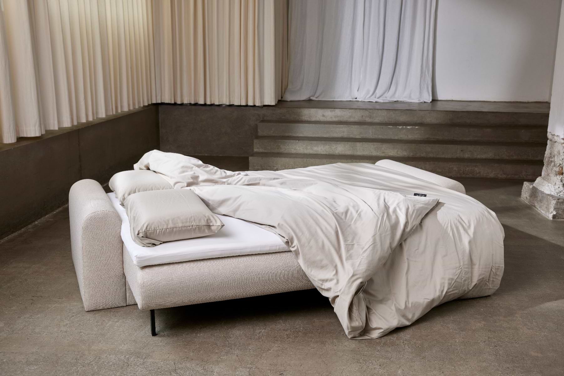 I en sovesofa med oppbevaring får du en flott 3-i-1 løsning; seng, sofa og garderobeskap i en komplett pakke. Du får et møbel som dekker alle dine praktiske behov i hverdagen og du er reddet fra å fylle hjemmet ditt med møbler som kun fyller én funksjon. På den måten kjøper du færre, men bedre møbler. En sovesofa med oppbevaring er perfekt for den lille leiligheten, hvor hver kvadratmeter teller, eller for barnefamilien, hvor oppbevaringsplassen i skapene har krympet. Eller bare for deg som liker et pent og ryddig hjem. Hos Bedre Nætter ønsker vi å bidra til å gjøre hverdagen litt enklere, derfor har vi to sovesofaer med oppbevaring; MOMA og MOME. I de får du den perfekte sovesofa med oppbevaringsplass, som kombinerer stilrent design og svært god funksjonalitet i ett møbel. Din stues nye svar på lommekniven.